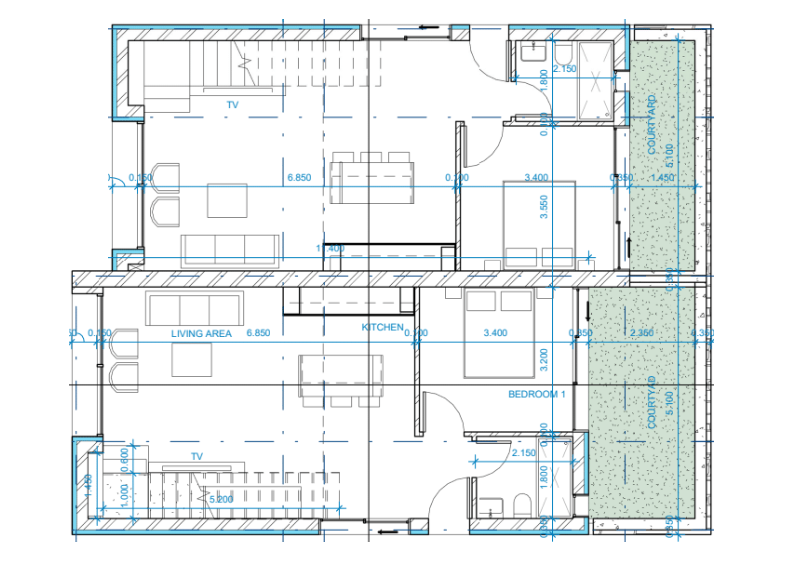 This unique collection includes 17 two-bedroom villas — both detached and semi-detached — built to the highest standards of design and comfort. These contemporary coastal homes feature large floor-to-ceiling windows that flood the interiors with natural light, providing panoramic views and a seamless flow between indoor and outdoor living spaces. Elegant travertine finishes, premium tiling, concealed air conditioning, and integrated sanitary ware deliver a sleek and modern aesthetic that defines upscale Mediterranean living.