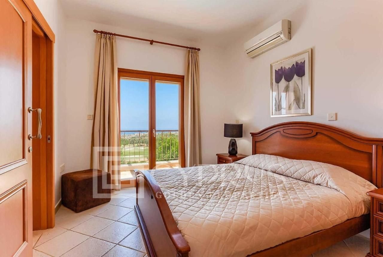 Step outside to the enchanting exterior, where you will find an inviting swimming pool, perfect for cooling off on warm days. The villa’s strategic location allows for stunning views of both the lush golf courses and the shimmering Mediterranean Sea, making this property a true gem in Aphrodite Hills.